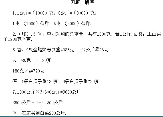 二年級奧數下冊:附錄一 第一講 重量的認識習題解答