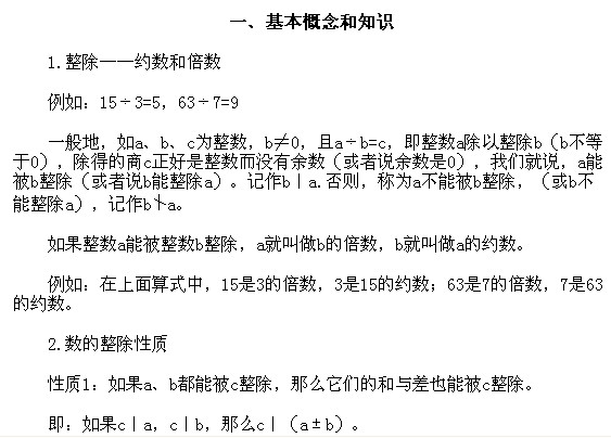 五年級奧數上冊:第一講 數的整除問題  基本概念和知識